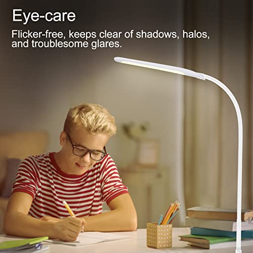 HAILOLY Lampada da Scrivania Flessibile con Morsetto, 9W Lampada da Lettura Eye-Caring 10 Livelli di Luminosità e 3 Modalità Colore, Lampada da Tavolo Morsetto per Home Office, Bianco