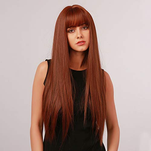 HAIRCUBE Lungo diritto con frange Parrucche per le Donne Natura Resistente al calore Fibra sintetica Parrucche con Pony Cosplay quotidiano (arancione rosso/auburna)