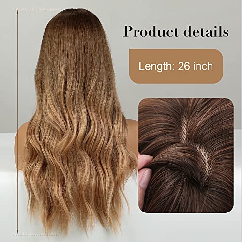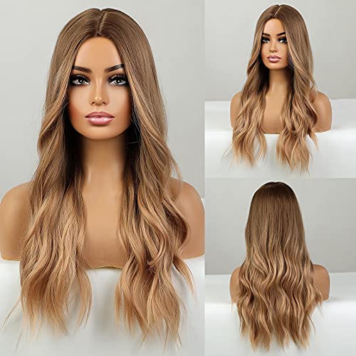 HAIRCUBE Parrucca Lunga Bionda Per Le Donne Parrucca Sintetica Naturale Capelli Ricci Mossi Parrucche Ombre Parte Centrale, Festa Uso Quotidiano