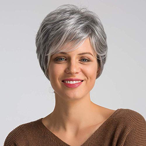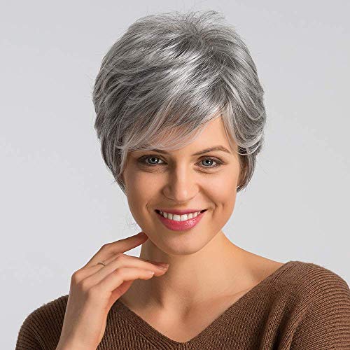 HAIRCUBE parrucca naturale dei capelli umani per le donne parrucche abbastanza corte grigie per le donne bianche