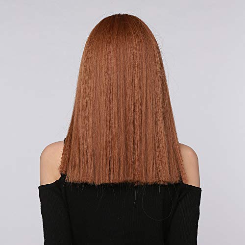 HAIRCUBE Parrucche diritte naturali con frangia d'aria Parrucca sintetica naturale rosso-marrone per donna Parrucca sintetica naturale per donne Vestito da festa Halloween Cosplay Parrucca da donna