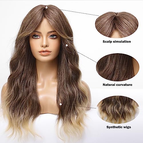 HAIRCUBE Parrucche Lunghe Castane da Donna, Parrucca di Capelli Sintetici da Marrone a Biondo Ombre con Frangia
