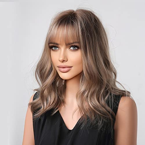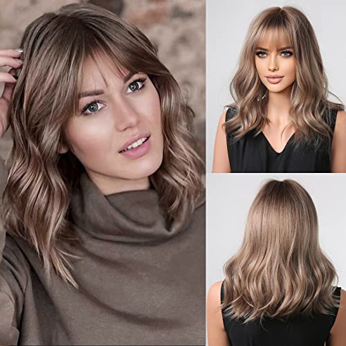 HAIRCUBE Parrucche Lunghe Marrone Chiaro Ricci per le Donne con Frange