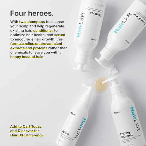 HairLXR - Formula in quattro fasi per la crescita dei capelli con biotina, mantiene i capelli, aumenta il volume e stimola la ricrescita, 2 shampoo + balsamo + siero