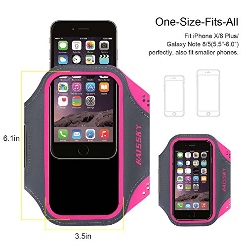 HAISSKY Gym Running Workouts Sports Phone Arm Band for Samsung Galaxy S21, S22, S23 up to 5,7 inch with with Key Holder, Locker Cable per iPhone 8 7 6 6S Samsung Galaxy S7 S6 S6 Edge S5 S4 ecc