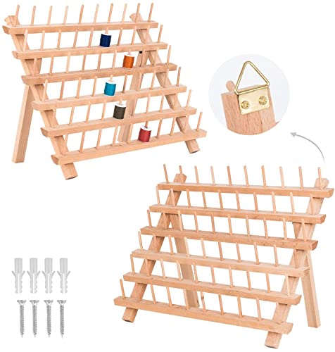 HAITRAL Set di 2 supporti per filo per 60 bobine, organizer da cucito con gancio e attrezzi, porta filo da ricamo in legno per cucito, trapuntatura, ricamo, intreccio di capelli