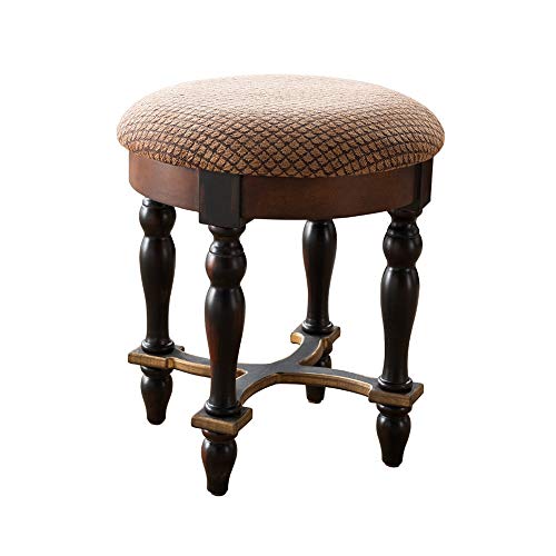HAIYU- Sgabello da Toeletta Vintage in Legno Sgabello Basso Imbottito Rotondo da Salotto e Camera da Letto Sgabello da Scarpe per Ingresso Casa, Base Rinforzata, 38 x 44,5 cm