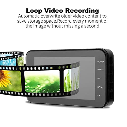 Hakeeta Dash Cam per Moto, 1080P 4IN, Touch Screen, Impermeabile, WiFi, sensore G, rilevamento del Movimento, videocamera Anteriore e Posteriore con videocamera, Monitor di parcheggio, Ricaricabile
