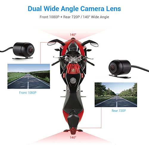 DOPPIA FOTOCAMERA ANTERIORE E POSTERIORE: il sistema a doppia fotocamera aiuta a registrare ogni momento di te e della tua moto, coprendo più canali e avendo un campo visivo più ampio. Aiutarti a osservare l'ambiente circostante e proteggere la tua sicurezza di guida.