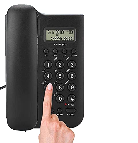 Hakeeta Telefono Fisso a Filo del Telefono con Pulsante Grande, Doppio Sistema FSK/DTMF per L'Ufficio di Un Hotel.può Essere posizionato sul Desktop o Montato a Parete(Nero)