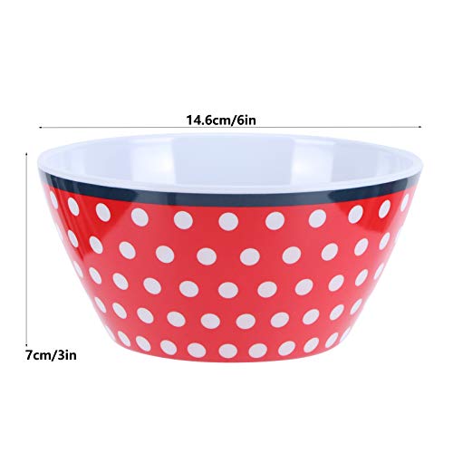 Hakeetaa Ciotola per cibo, insalatiera in plastica multiuso, non fragile, resistente all'usura, per insalata di cereali Zuppa di riso Frutta(Red dots)