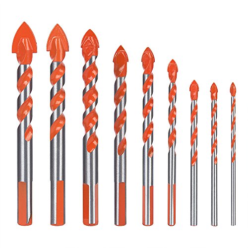 Hakkin 9PCS multi-construction vetro punte per trapano per piastrelle per cemento, mattoni in legno e plastica