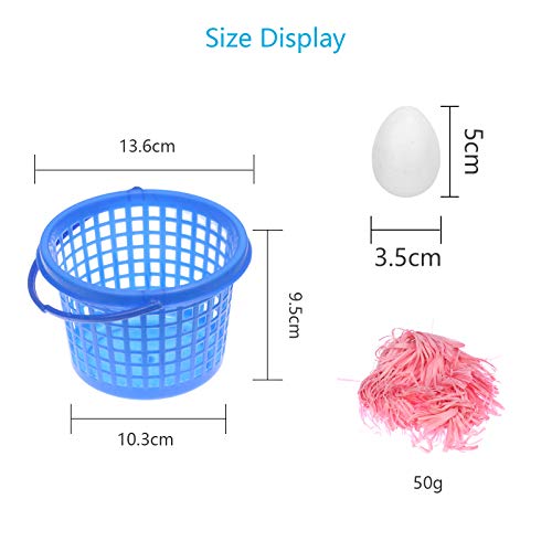Set di cestini per uova di Pasqua:Riceverai 6 cestini da caccia per uova di Pasqua di diversi colori, 12 uova di schiuma e due colori di brandelli di carta rafia. Puoi realizzare decorazioni perfette per cesti di uova di Pasqua con questo set regalo. Ti piaceranno molto queste simpatiche forniture pasquali.