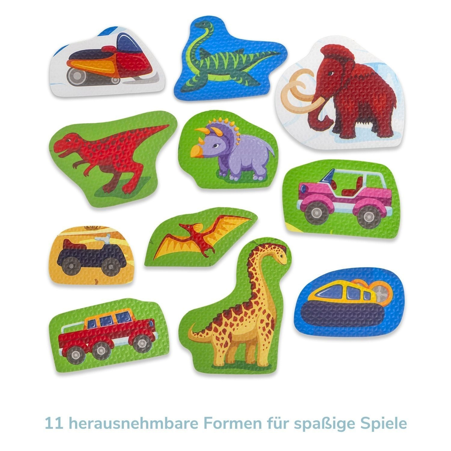 Con il Tappetino Hakuna Puzzle Mat il vostro bambino si divertirà molto. Si tratta di un tappeto puzzle a misura di bambino per imparare il mondo dei dinosauri in modo giocoso. dettagli del prodotto: Dimensioni (larghezza x lunghezza): 120 x 120 cm piastra: 30 x 30cm Spessore: 1,2 cm Numero di pezzi del puzzle: 16 Materiale: schiuma EVA (morbida e flessibile) Istruzioni per la cura: impermeabile, facile da pulire con sapone e panno Espandibile Cartone da imballaggio riciclabile Età: da 0 mesi