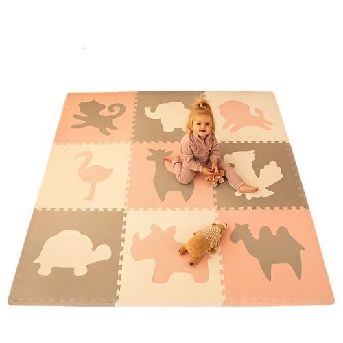 TAPPETINI 20% PIÙ SPESSI E MORBIDI realizzati in materiale EVA di alta qualità spessi 1,2 cm. Grazie ai bordi sicuri e alle larghe sagome di animali, le tessere si incastrano alla perfezione offrendo una confortevole seduta su pavimenti duri e freddi.