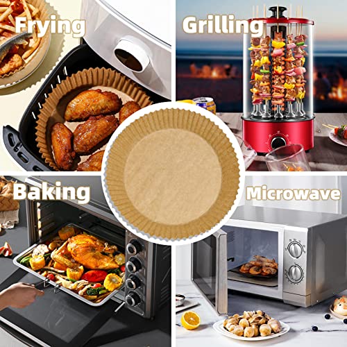 Ampiamente usato: la carta pergamena per le fodere della friggitrice ad aria può essere utilizzata per cuocere e friggere e friggitrice ad aria e microonde, adatta per cuocere al forno, campeggio, barbecue, feste estive, ecc, leggera e pratica.