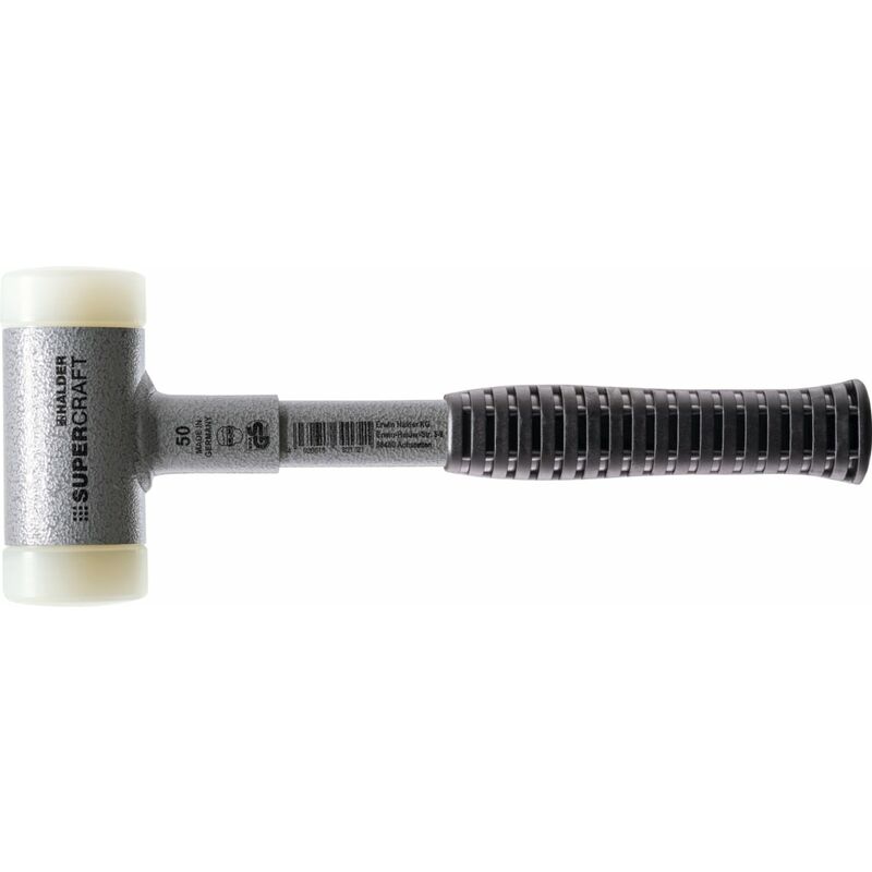 Robusto fulcro centrale in acciaio con inserti intercambiabili in nylon di grande qualità resistente all'usura. Antirimbalzo grazie alle sferette in acciaio all'interno del corpo. Manico in acciaio con impugnatura in gomma antiscivolo. Uso: Per la spianatura o l'applicazione di pezzi sui banchi macchina e per colpi morbidi nei lavori di montaggio. Ricambi: Per il tassello di ricambio in nylon vedi n. art. 754910. Dati tecnici Antirimbalzo sì Superficie Verniciatura a polvere Tipo di prodotto Martello Materiale manico Tubo di acciaio Serie SUPERCRAFT® Materiale corpo Tubo di acciaio Lunghezza complessiva, mm 300 Materiale inserto Nylon bianco, duro ⌀ Testa della mazza, mm 40 Lunghezza testa con tasselli, mm 115 Denominazione originale prodotto SUPERCRAFT Peso, kg 0,805