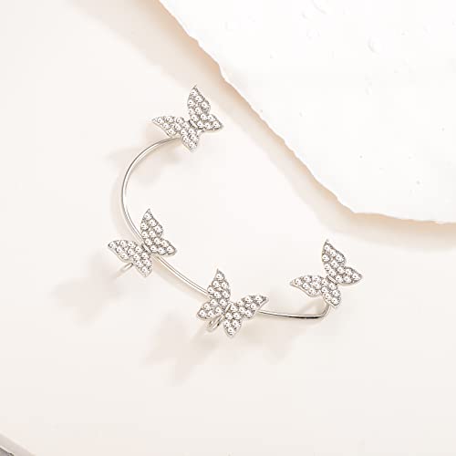Haley Orecchini a forma di farfalla da donna, con clip per le orecchie con zirconi lucidi, non forati, copriorecchie striscianti da donna (regali per le donne) (argento a destra)
