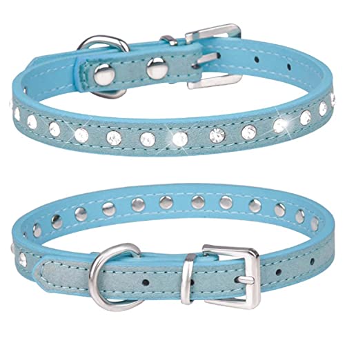 HALFSUMO Collare Cane in Morbida Pelle Scamosciata Collari per Cani con Borchie Scintillanti con Strass per Animali Domestici Cuccioli Gatti Cani Combo Set con Guinzaglio Blu S