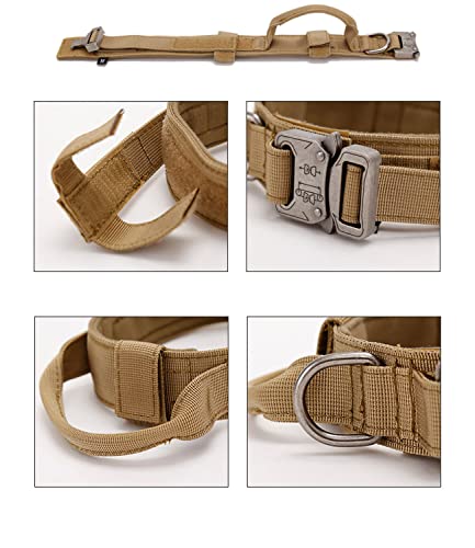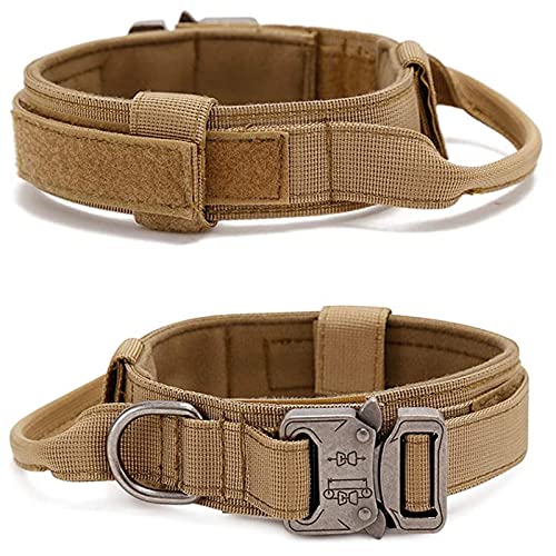 HALFSUMO Collare Cane tattico Regolabile con Maniglia di Comando, in Nylon, Imbottito, Fibbia in Metallo, collari per Cani di Taglia Media Grande, Caccia, addestramento, Tempo Libero, Outdoor Cachi L