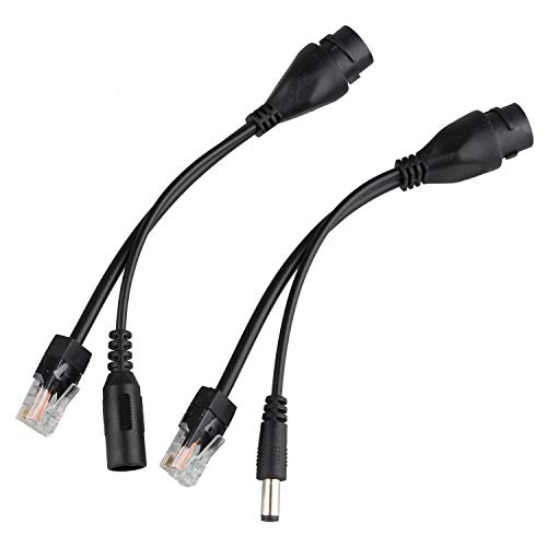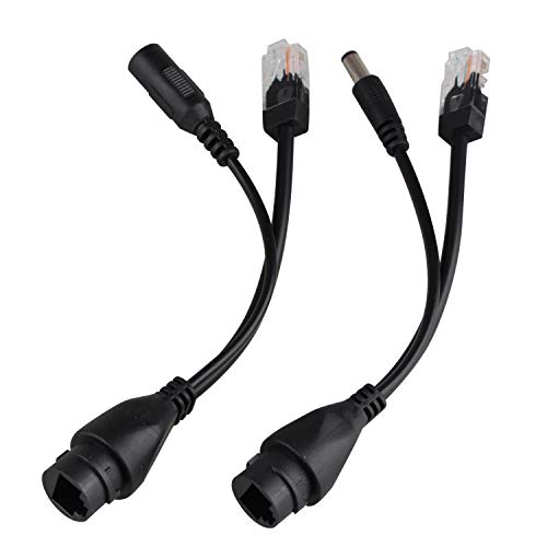 HALJIA 12v-48v Cavetti Splitter Adattatori Poe per Reti IP Camera, CCTV - Nero (1 * Cavo iniettore Poe + 1 * Cavo Splitter Poe)