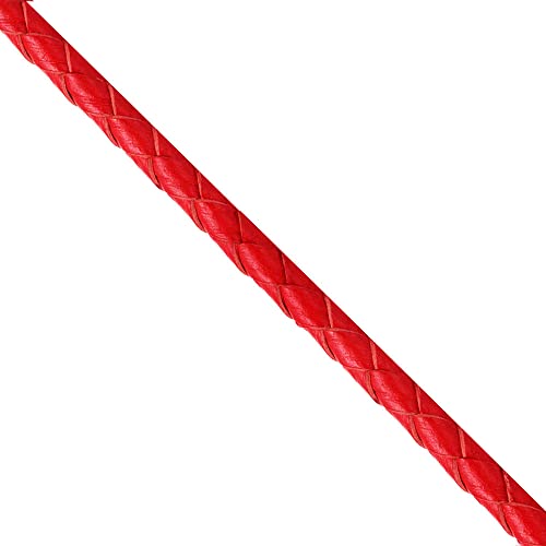 HALLEBEADS Cordoncino rotondo in pelle intrecciata, 1 m, rosso, ininterrotto, per braccialetti fai da te, gioielli e accessori artigianali (rosso, 4 mm)