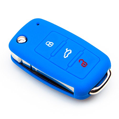 Hallenwerk - Custodia in Silicone a 3 Tasti per Chiave Auto, a Scomparsa, Colore: Blu Scuro