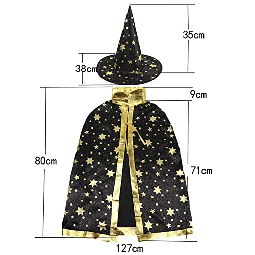 Hallojojo Mantello da Mago Bambini Mantello da Strega con Cappello Costume da Mago Halloween Cosplay Costume Festa da Mago Carnevale Mantello