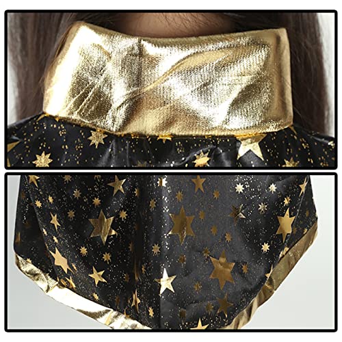 Il motivo a stelle sul mantello lo rende molto bello e interessante, proprio come un classico mago, il mantello è regolabile e ha un design a cravatta per indossarlo e toglierlo facilmente.