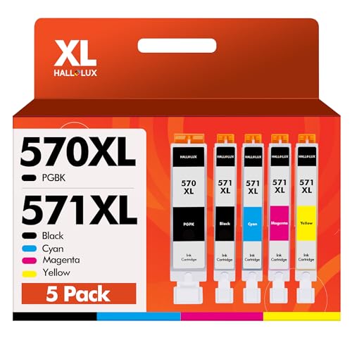 HALLOLUX PGI-570 CLI-571 XL 570XL 571XL Confezione da 5 Compatibili per Canon 571 570 per Canon Pixma TS5050 MG5750 TS5055 MG6852 MG5753 (Nero Ciano Magenta Giallo)