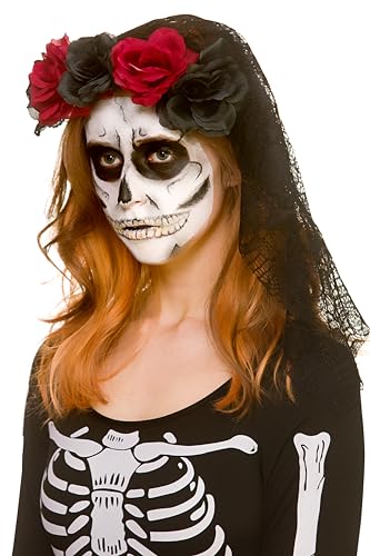 Halloween Day of the Dead Black Lace Veil with Flowers Fancy Dress Accessory
