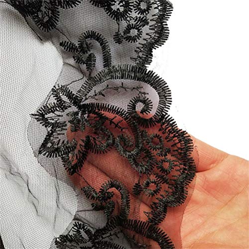 ❤Tulle a strato singolo, nero puro, motivo floreale ricamato con bordi in pizzo, sembra misterioso e bello.