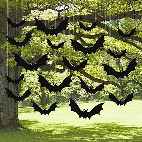 Halloween Decorazioni, 18pcs Halloween Pipistrello, Appendere Pipistrelli, Realistico in Plastica Halloween Pipistrello Appeso