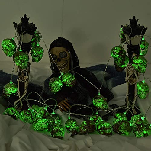 Design speciale di Halloween: ogni teschio ha una trama di marmo diversa. Facile da vestire a casa e creare un'atmosfera spettrale di Halloween.30 Led Skull Light.