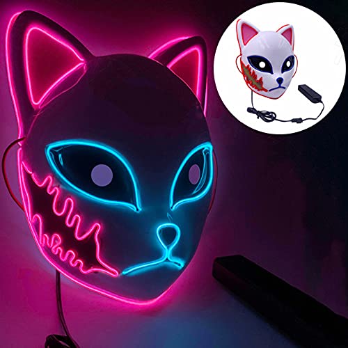 Halloween LED Maschere, Maschere Volpe Luminose, the Purge Mask LED che si Illumina nella Notte, Horror Maschere Maschera per del Partito (Pink)