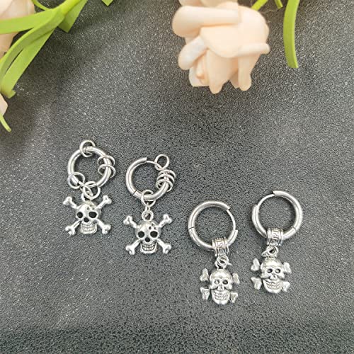 ✔️Orecchini punk goth: orecchini con teschio punk in acciaio inossidabile. Gli orecchini a cerchio pendenti sono adatti per uomini e donne indipendentemente dall'età. Molto bello, può abbinarsi ai tuoi costumi di Halloween e agli abiti da festa. Indossarli non ti farà sentire a disagio le orecchie e questi orecchini sono abbastanza resistenti da garantire un uso prolungato.