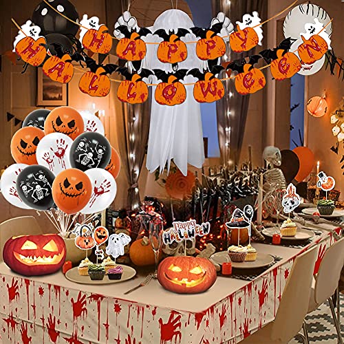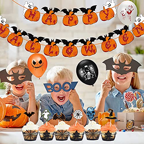 【Kit di palloncini di halloween】Otterrete 1 × “Happy Halloween” Banner, 21 × Decorazione per cupcake di Halloween, 24 × Palloncini in Lattice di Halloween, 2 × Nastro.