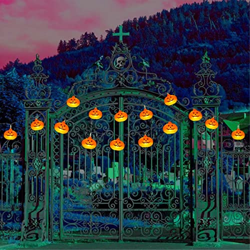 【Uso interno ed esterno】 - Alla luce del giorno, le luci di Halloween decoreranno il tuo giardino, casa, scale o ringhiere e altri luoghi, portandoti il tocco del raccolto autunnale. Di notte, possono emettere il colore giallo per accentuare le luci decorative di Halloween, perfette per decorare e illuminare case infestate per creare un'atmosfera spettrale.