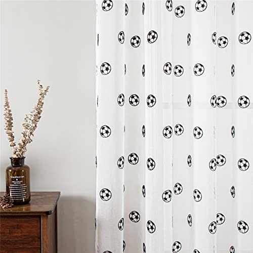 HALOGAMP Tende Oscuranti Con Occhielli Tende Trasparenti Ricamate In Tulle Per Bambini Per Soggiorno, Camera Da Letto, Voile Bianco,Calcio Nero,L100*H200Cm