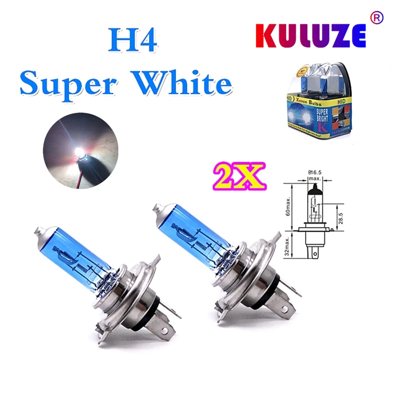 Car H4 halogen bulb 12V60/55W high and low light ultra white headlamp 100W car bulb p43t plastic box packaging