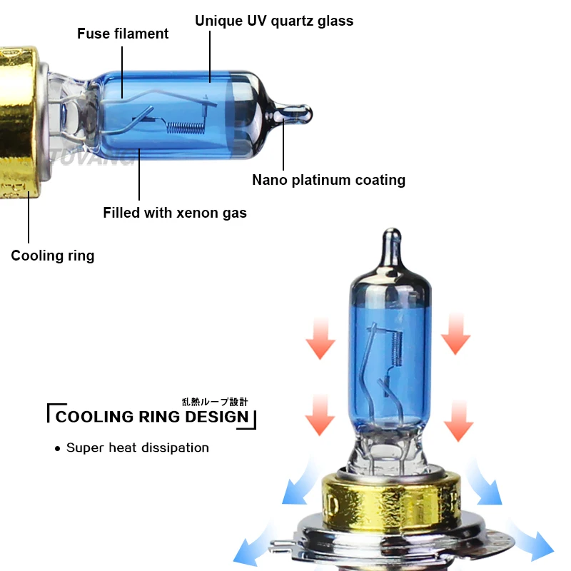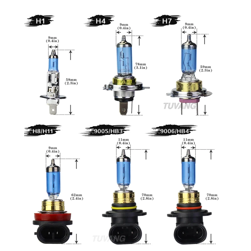2x 100W H1 H7 H4 H8 H11 9005 HB3 9006 HB4 Car Halogen Fog Light HeadLight Lamp 5000K Cool Blue White Xenon Replacement Bulb