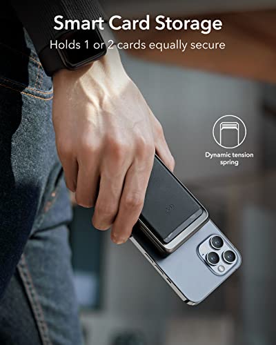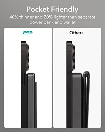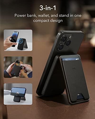 ESR HaloLock Portafoglio Power Bank 5000mAh con Cavo USB-C, Portafoglio MagSafe e Supporto Regolabile, Caricabatterie Portatile Wireless con iPhone 15/14/13/12 Series, Tranne iPhone 13/12 Mini, Nero