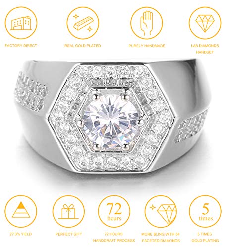 HALUKAKAH Anello in Oro con Diamanti Iced Out,Uomo Finitura in Oro Bianco Anello Taglia Regolabile con Gratuito Pacco Regalo
