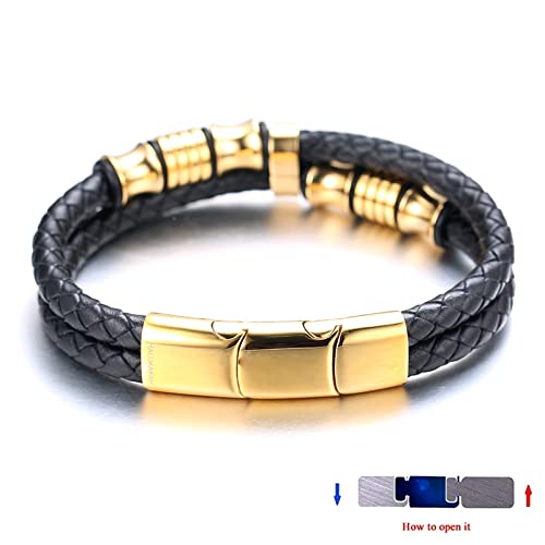 HALUKAKAH Bambini ● Onore Junior Junior ● Ragazzi Bracciale in Vera Pelle 6-12 Anni. Titanio Onore Oro Perline Chiusura Magnetica Dorata Taglia Regolabile 18-19.5cm con Confezione Regalo Gratuita