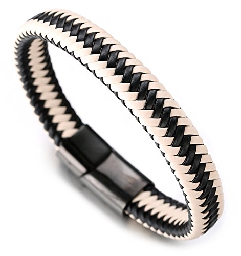 HALUKAKAH ● Jazz ● Bracciale Uomo in Vera Pelle Cuoio Classico Pianoforte Chiusura Magnetica Titanio Acciaio 8.46"(21.5cm) con Pacco Regalo Gratuita