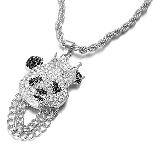HALUKAKAH Catena d'oro Uomo Iced out,Platino Placcato Finitura in Oro Bianco Panda della Corona Pendente Collana,Cz Completa Lab Diamantes Prong Set,con Catena di Corda 60cm,Gratuito Pacco Regalo