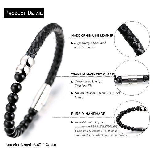HALUKAKAH ● Saluto Il Notte ● Bracciale Uomo in Vera Pelle Cuoio con Perline in Pietra Naturale di Ossidiana,Intelligente Chiusura Magnetica, 8.46"(21.5cm) con Pacco Regalo Gratuita