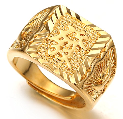 HALUKAKAH ● Oro Tutto Bene ● Uomo Maschile Anello in 18K 18 Carati 18 Carati Oro Autentico Dorato Ricco Taglia Regolabile con Pacco Regalo Gratuita
