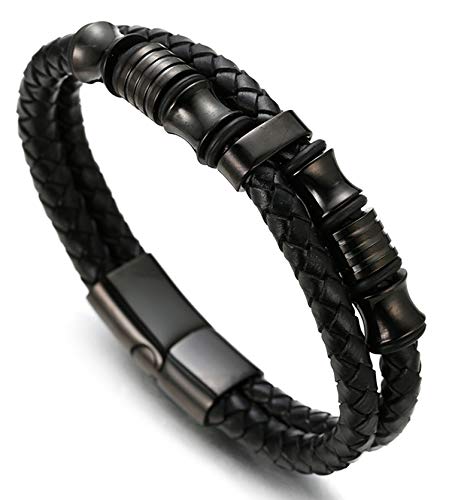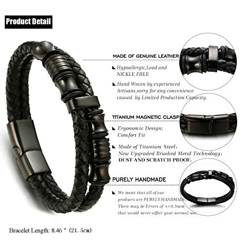 HALUKAKAH Uomini Bracciale in Vera Pelle con Perline in Titanio Nero Chiusura Magnetica Nightwatch Nero Taglia 21.5cm con Confezione Regalo Gratuita (Nero 21.5cm)