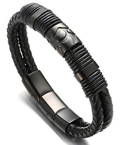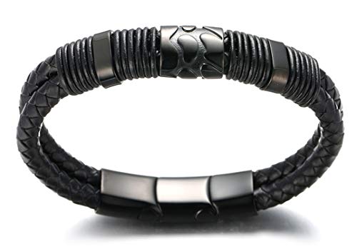 HALUKAKAH Plus ● Vulcano ● Bracciale Uomo in Vera Pelle Cuoio Chiusura Magnetica in Titanio Acciaio Nero Taglia Regolabile 8.46"-9"(21.5-23cm) con Pacco Regalo Gratuita